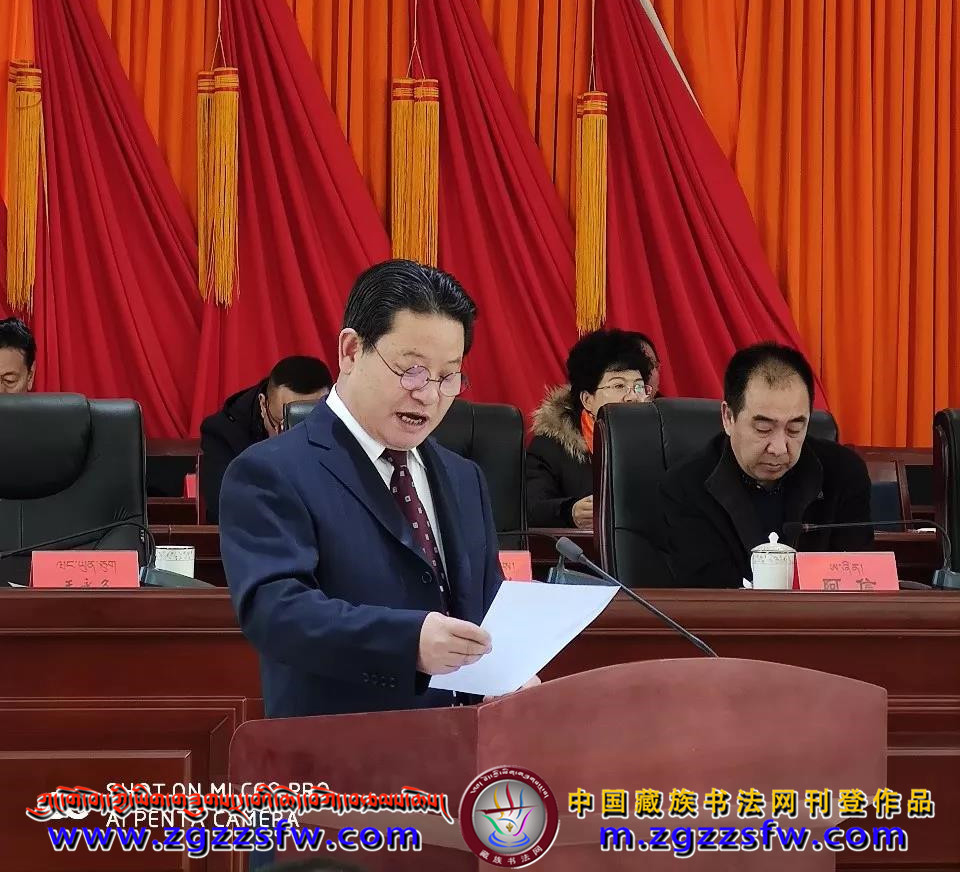 ཁུལ་རིག་རྩལ་ལྷན་ཚོགས་ཀྱི་ཀྲུའུ་ཞི་ཝང་ཡུང་ཅའོ་ཡིས་ཁུལ་རིག་རྩལ་ལྷན་ཚོགས་ཀྱི་སྐབས་གསུམ་པའི་ཨུ་ཡོན་ལྷན་ཁང་གི་ཚབ་བྱས་ནས《ལས་དོན་སྙན་སྒྲོན》 ཞུ་བཞིན་པ།